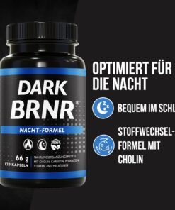 BRNR Dark Night Formula este un complex dual: ajută somnul și metabolismul pe durata nopții. Fiecare capsulă conține: melatonină, L‑carnitină tartrat, L‑cholină bitartrat, extract de lemon balm, garcinia cambogia, B6 – formulă vegană, fără zahăr și stimulente. Se utilizează 2 capsule cu 30 min înainte de culcare. Ideal ca pastile de dormit care susțin somn odihnitor și metabolism eficient.