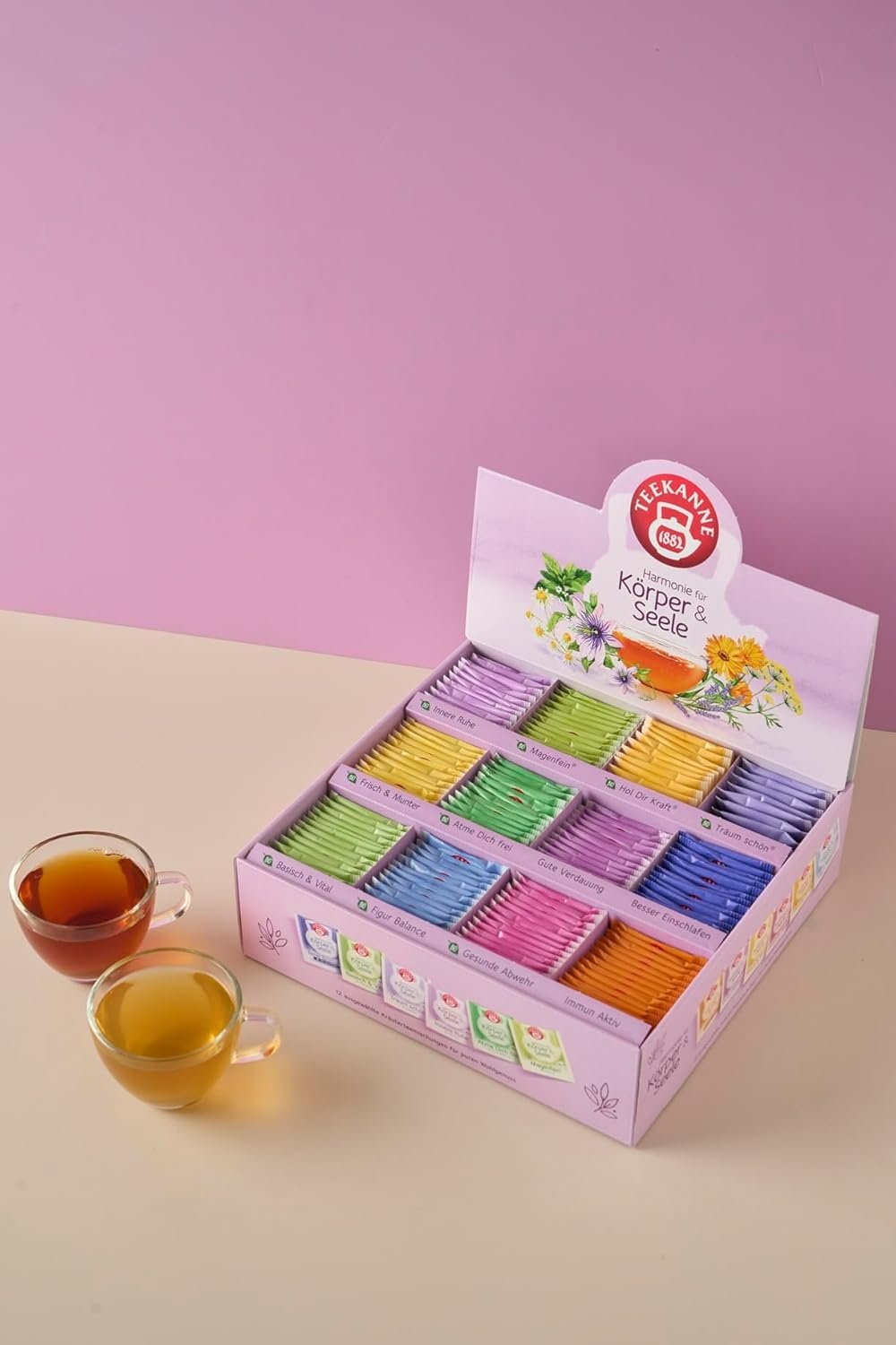 Ingrediente: hibiscus, frunze de roinita, mere, rooibos, radacina de cicoare, menta, frunze de mur, lavanda, flori de musetel, arome naturale, petale de floarea-soarelui, frunze de zmeur, frunze de capsun.
