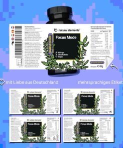 Capsulele Focus Mode, produse în Germania și testate în laborator, sunt formulate pentru a stimula concentrarea și a susține memoria fără cofeină. Ingrediente active: extract de Bacopa (Brahmi), Ginseng, Ginkgo Biloba, plus provitamine și minerale esențiale – ideale în categoria vitamine pentru memorie și energie mentală. Fără arome, coloranți sau îndulcitori artificiali