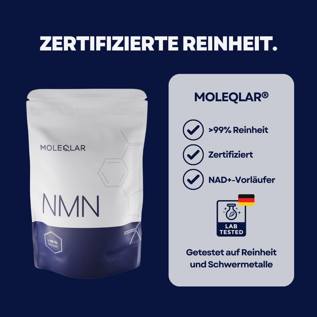 Pulbere NMN cu puritate >99%, testată în laboratorul german, precursor de NAD+ pentru energie celulară și longevitate.