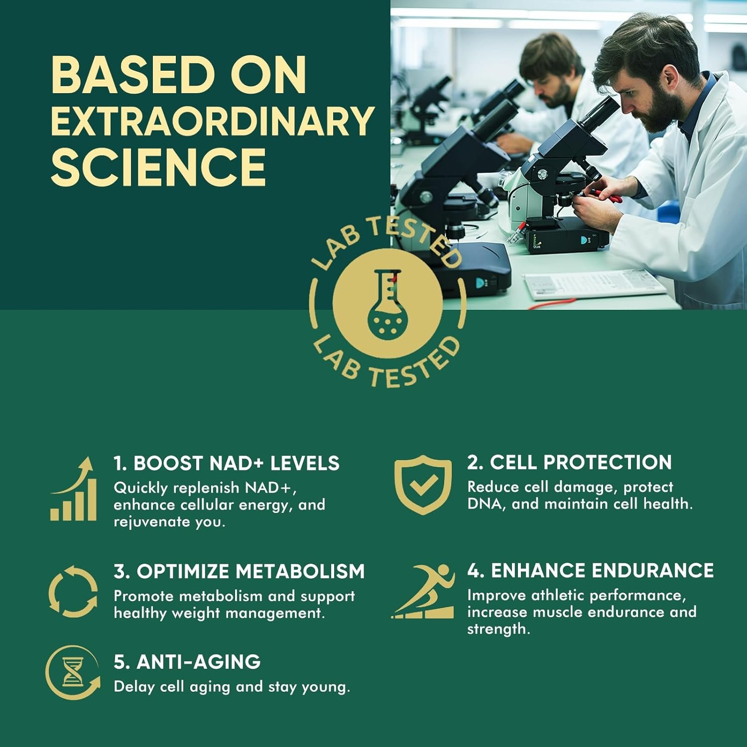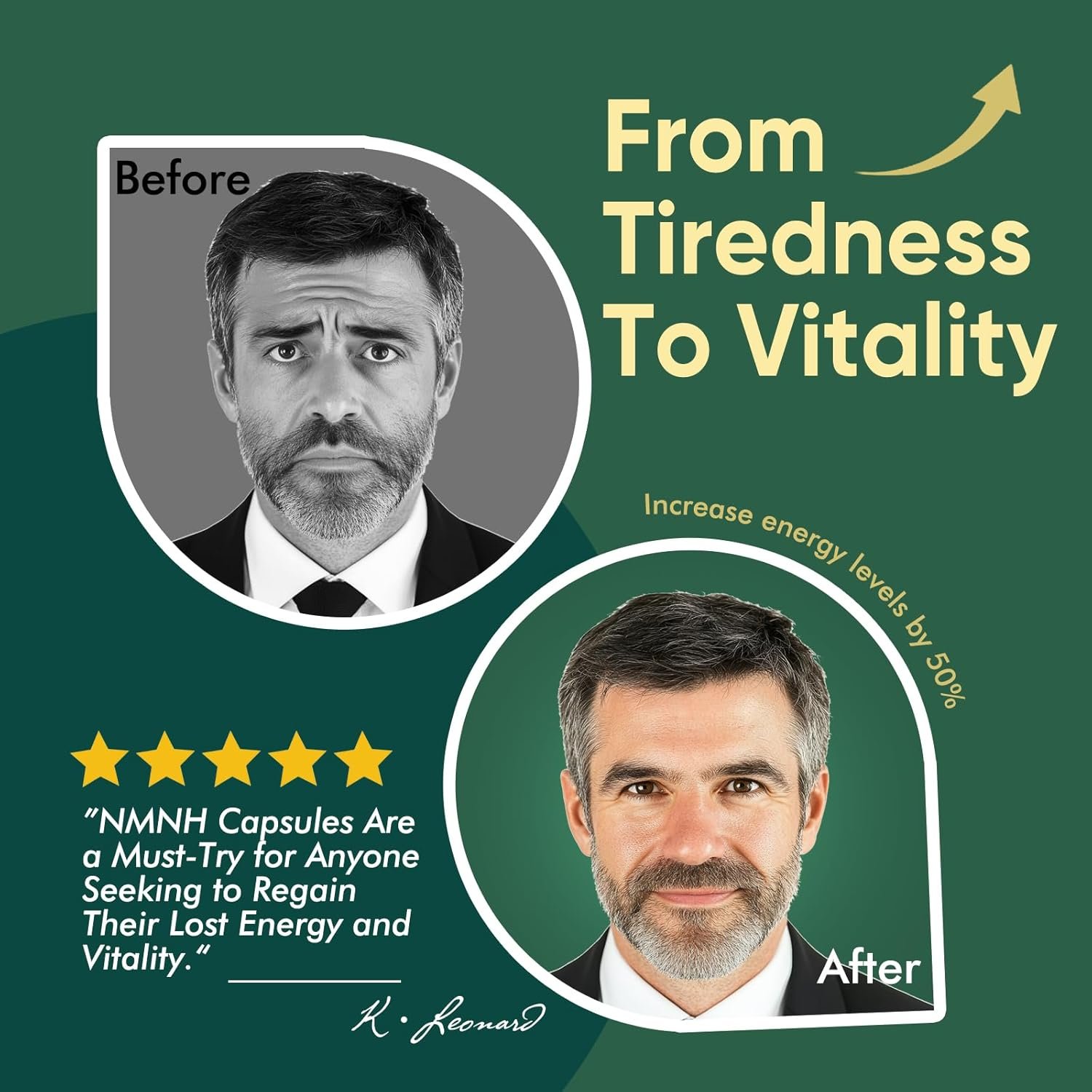 Contine 500mg NMNH – precursor NAD+ de ultima generatie, pentru sustinerea energiei celulare, focusului mental si incetinirea procesului de imbatranire.