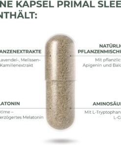 Primal Harvest „Primal Sleep” sunt capsule naturale ce acționează ca pastile pentru dormit, conținând extraordinara combinație: valeriană (150 mg), L‑triptofan (100 mg), GABA (100 mg), extracte de mușețel (100 mg), roiniță, hamei (50 mg), lavandă (50 mg), melatonină 3 mg și magneziu bisglicinat 100 mg . Formula este vegană, fără gluten, soia sau lactate (capsulă cu gelatină animală) și nu conține umpluturi artificiale Se iau 2 capsule cu 30 min înainte de culcare pentru somn profund și relaxare naturală. Ideal pentru cei ce caută suplimente pentru somn sigure și eficiente.