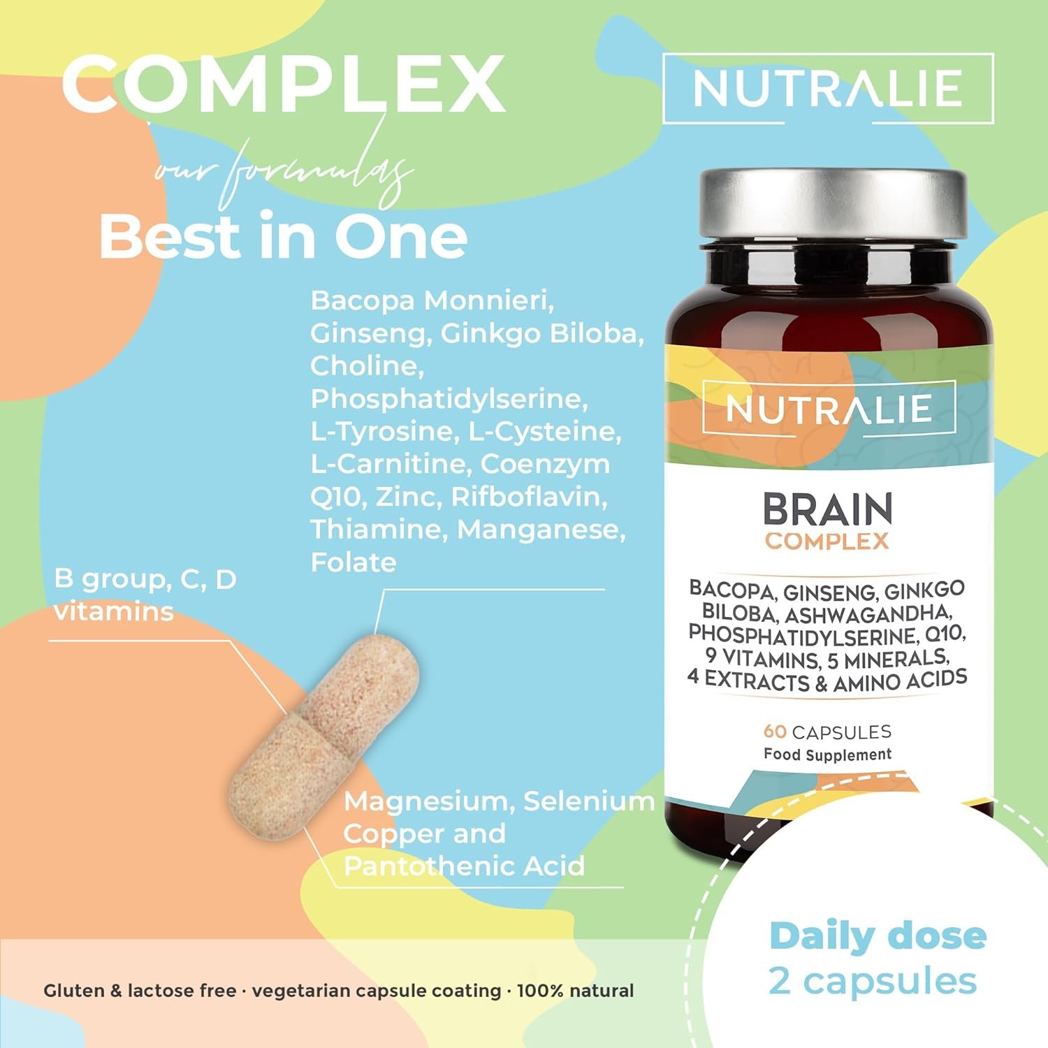 Acest supliment nootropic avansat este formulat pentru a sustine concentrarea, memoria si functia cognitiva. Ideal pentru cei care cauta suplimente pentru memorie sau vitamine pentru energie si memorie, produsul combina ingrediente puternice pentru claritate mentala si energie sustinuta. Contine L-Tirosina, L-Teanina, cafeina naturala, extract de Ginkgo Biloba, Bacopa Monnieri si vitamine din complexul B – toate recunoscute pentru beneficiile asupra sanatatii creierului. Suplimentul ajuta la reducerea stresului mental si imbunatateste atentia si focalizarea in perioade solicitante.